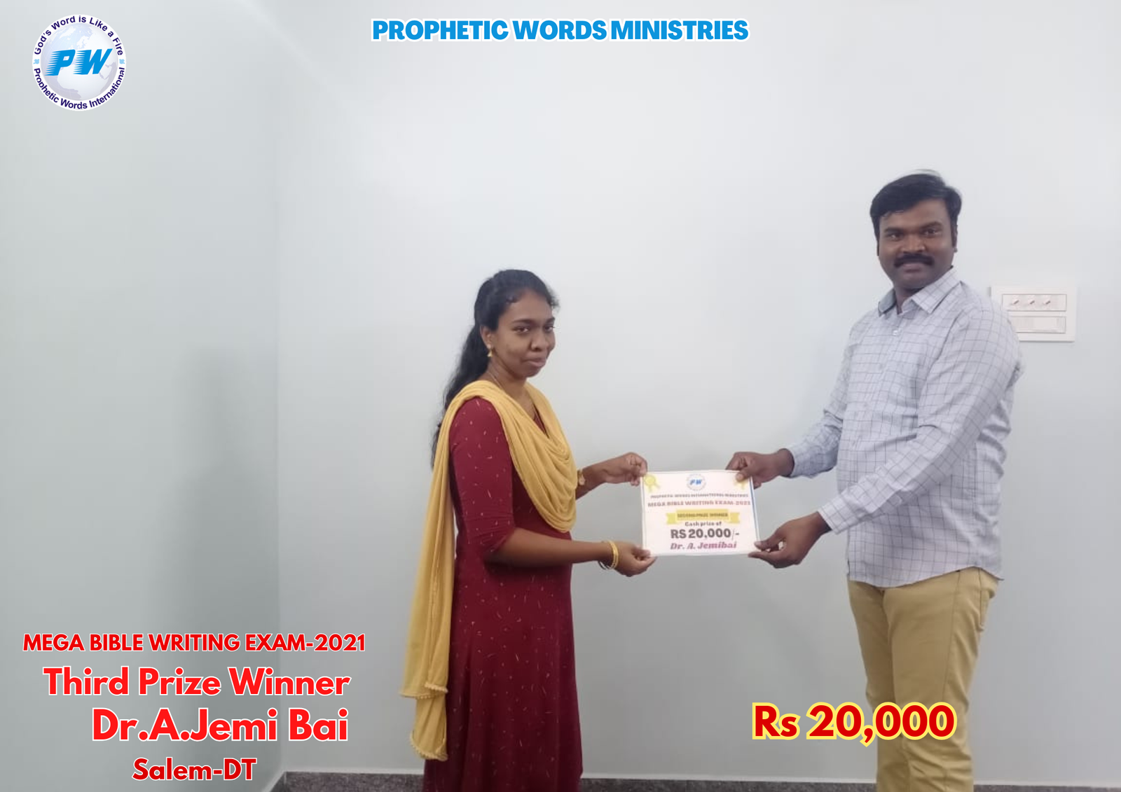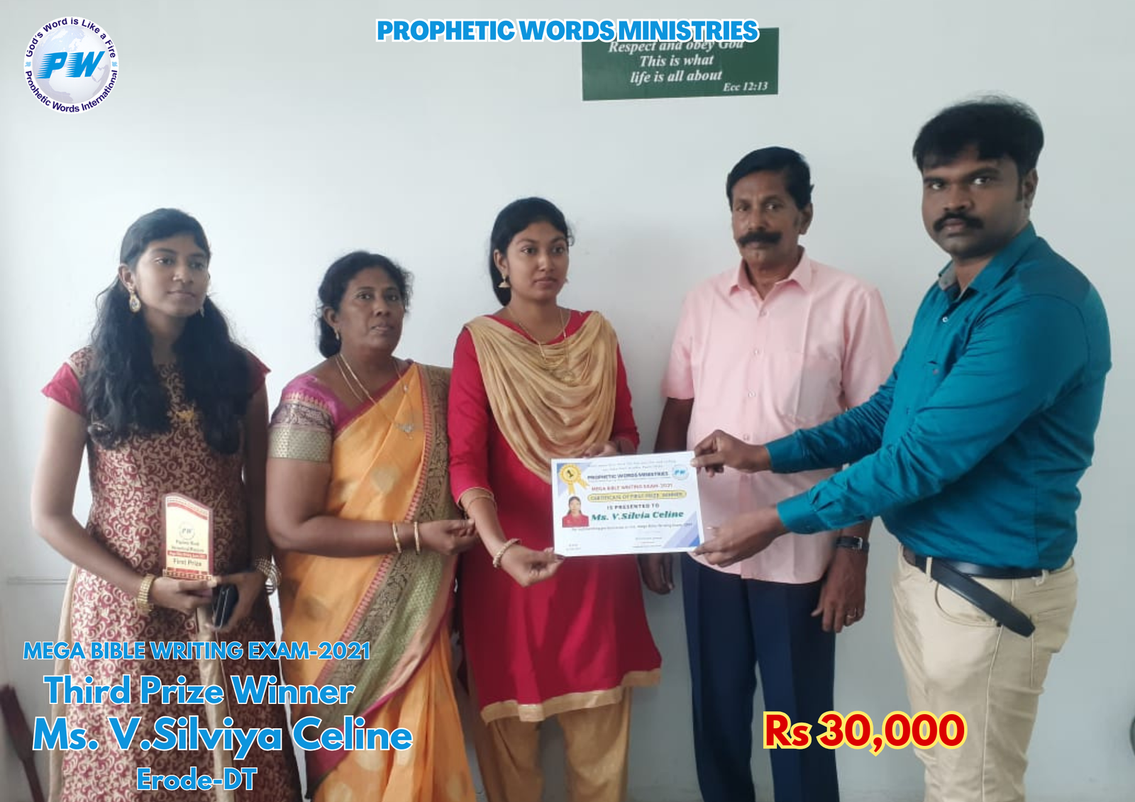 2020 ஆம் வருடம் நடத்தப்பட்ட தேர்வு அநேகருக்கு ஆசீர்வாதமாக இருந்ததினால் 2021 ஆம் வருடமும் தேர்வினை நடத்தும்படி பரலோக தேவன் ஆணையிட்டார். அந்த ஆணைக்கு கீழ்ப்படிவது என் மீது விழுந்த கடமை என்பதால், 2021 ஆம் வருடமும் தேர்வினை நடத்த ஆயத்தம் செய்யப்பட்டது. 2020 ஆம் வருடம் நடத்தப்பட்ட தேர்வில் கலந்து கொண்டவர்கள் ஒரே ஒரு பரிசு மட்டுமே கொடுப்பது எங்களுக்கு சோர்வினை தருகின்றது என்று கூறினார்கள். இதனால் மூன்று பரிசுகள் வழங்கலாம் என்று தீர்மானிக்கப்பட்டது.